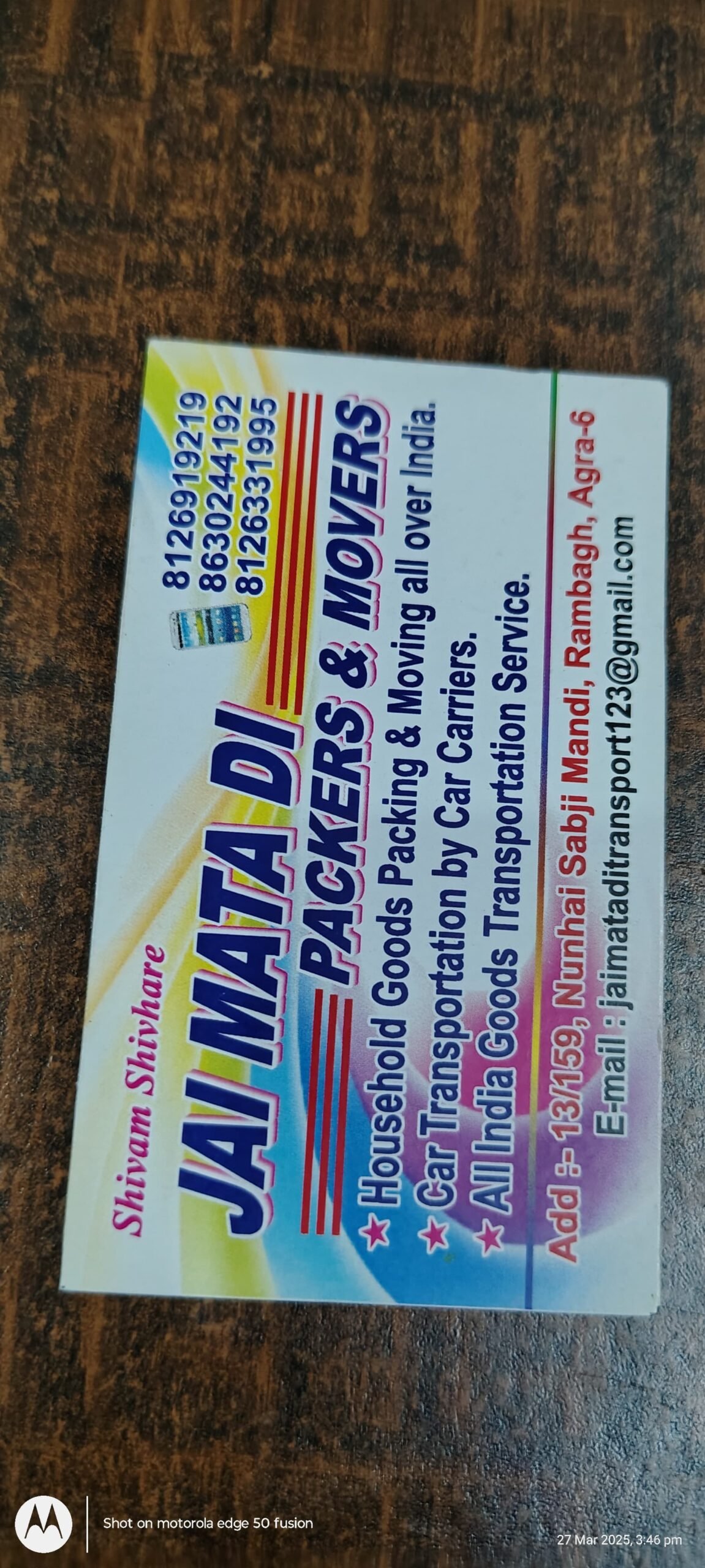 Jai Mata Di Packers & Movers is a leading relocation service provider offering safe, efficient, and affordable packing and moving solutions across India. With over 10 years of industry experience, we specialize in household shifting, office relocation, car and bike transport, warehousing, industrial moves, and international transportation. Our skilled team uses high-quality packing materials, GPS-enabled vehicles, and modern equipment to ensure damage-free and timely delivery. Customer satisfaction, transparency, and professionalism are at the core of our services. Whether you're moving locally or globally, we make the process smooth and stress-free. Trust us to move your world with care and confidence.